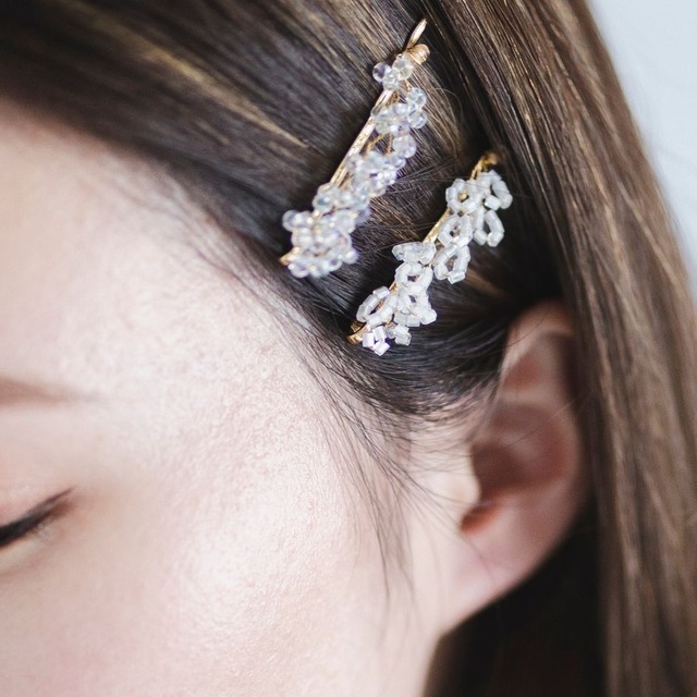 淡水パールとビーズのシルバー髪飾り